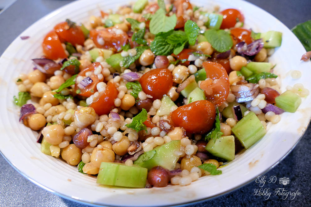 Parelcouscoussalade , wat is dat lekker , die kleine witte parelbolletjes die zijn echt lekker. Nog nooit geprobeerd dan word het nu de tijd en maak deze lekkere salade eens.